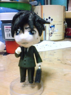 ニアの髪を黒く塗って月の顔の目を青く塗ってみかみんの体着けたらステになることに気付いてしまったけど気付かないふりして作業を続けます。