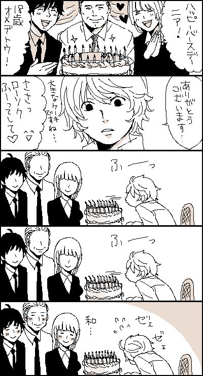 takiaさんよりリクエストいただきました「バースデーケーキの18本のローソクの炎を一発で吹き消す自信がなくてケーキを前にたじろぐニア」です。クリック原寸大。